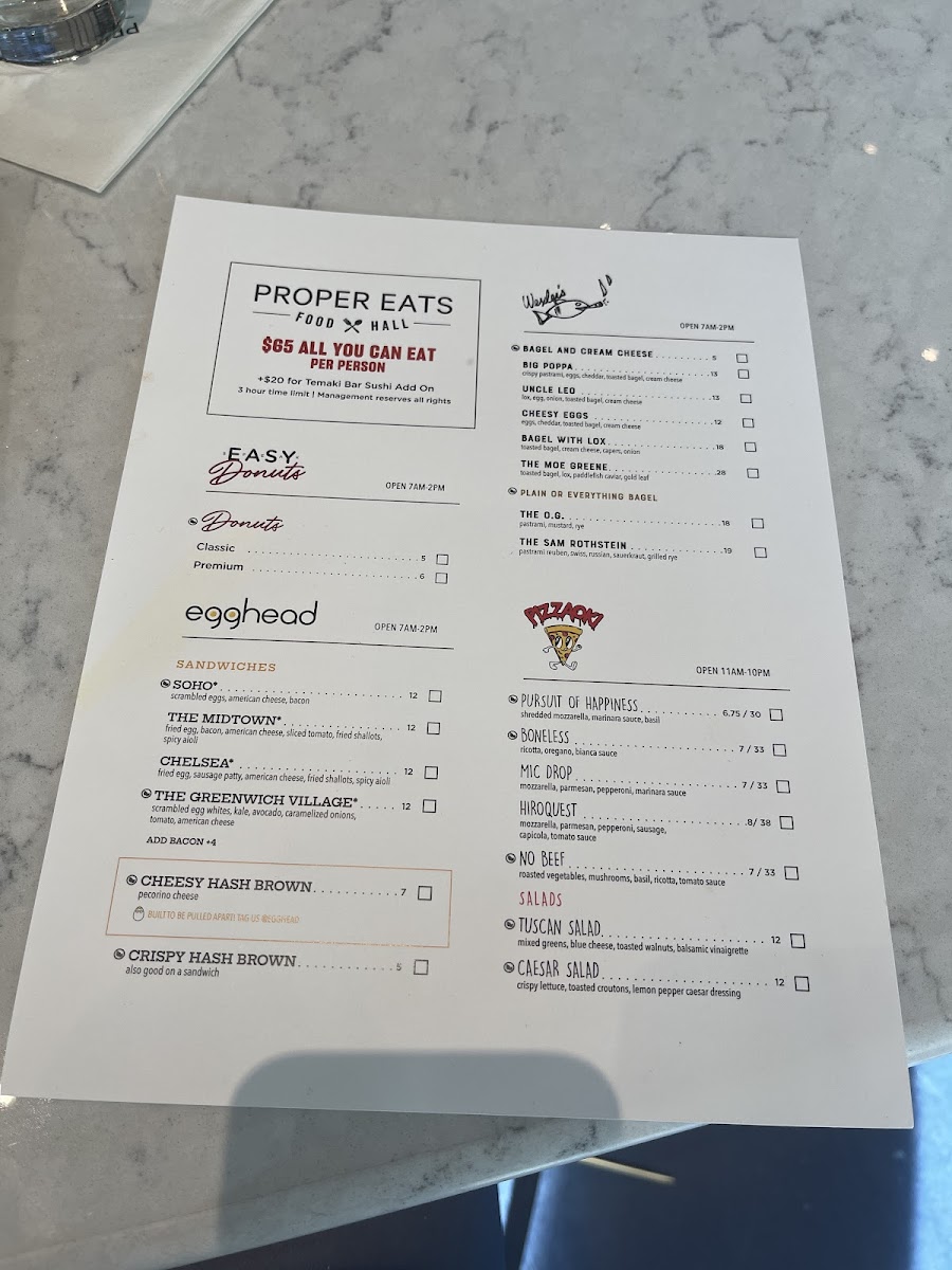 One of the standout features of Proper Eats is its selection of enticing cuisine types, accommodating diverse palates. Customer favorites include the pastrami and corned beef combo sandwich from Wexler’s deli and the hot honey pizza, both of which have earned rave reviews from diners. For those looking to indulge in a more unique experience, the $2 Oyster Happy Hour offers a fresh and adventurous option, as described by satisfied patrons who relished the flavor of the oysters topped with a zesty lemon and vinaigrette.